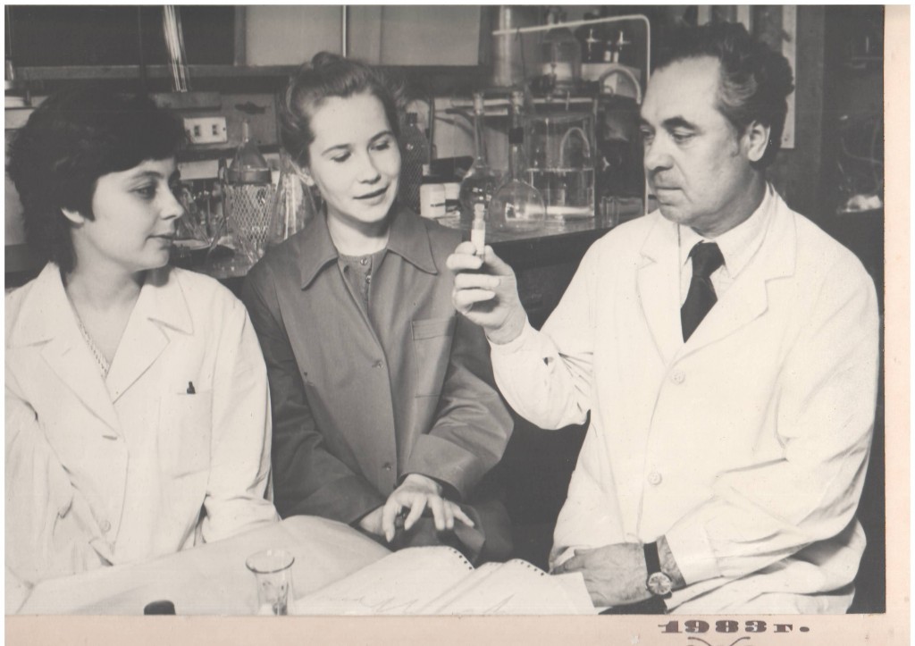 Academicianul Anton Ablov îndrumând tineri cercetători, anii 1960.