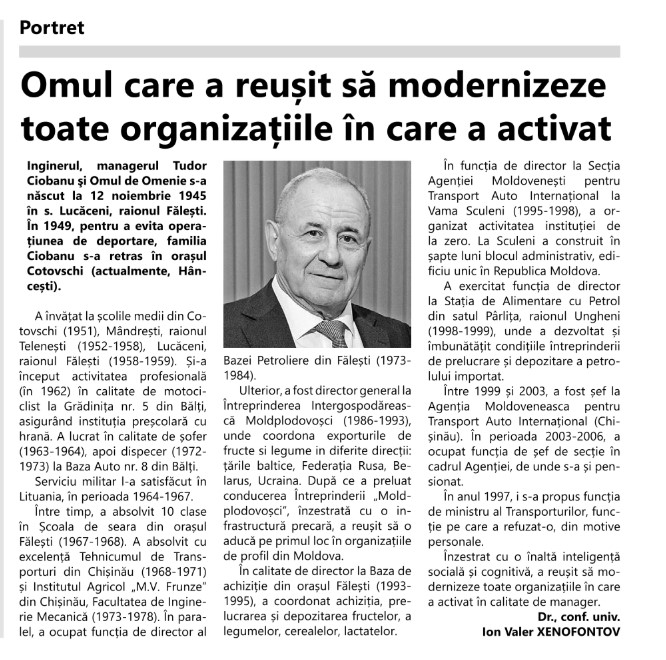 3. Ion Valer XENOFONTOV, conferențiar universitar, doctor în istorie, USM.